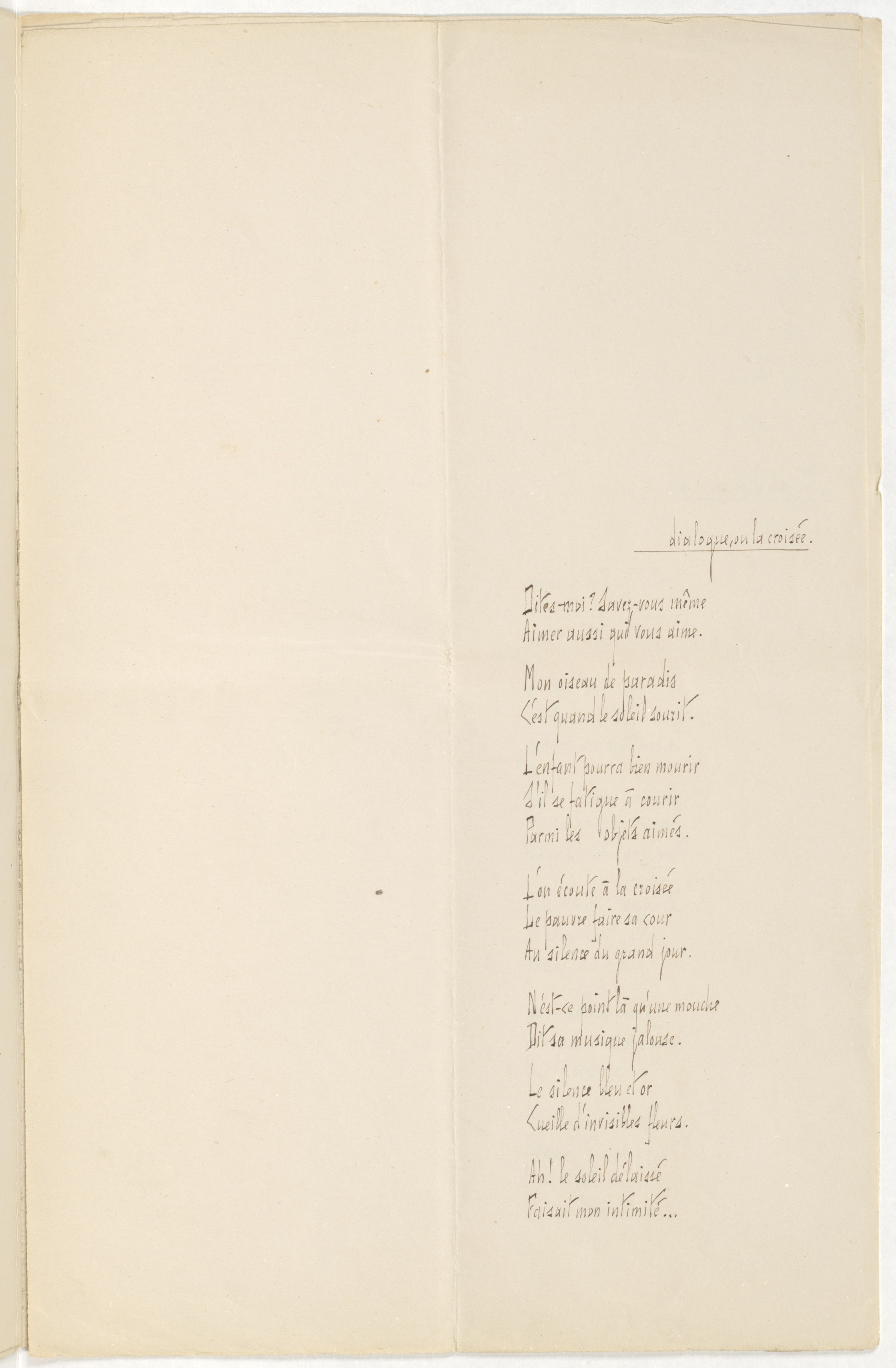 Manuscrit autographe signé d'un recueil de neuf poésies. Nombreuses variantes avec les versions éditées de ces textes.