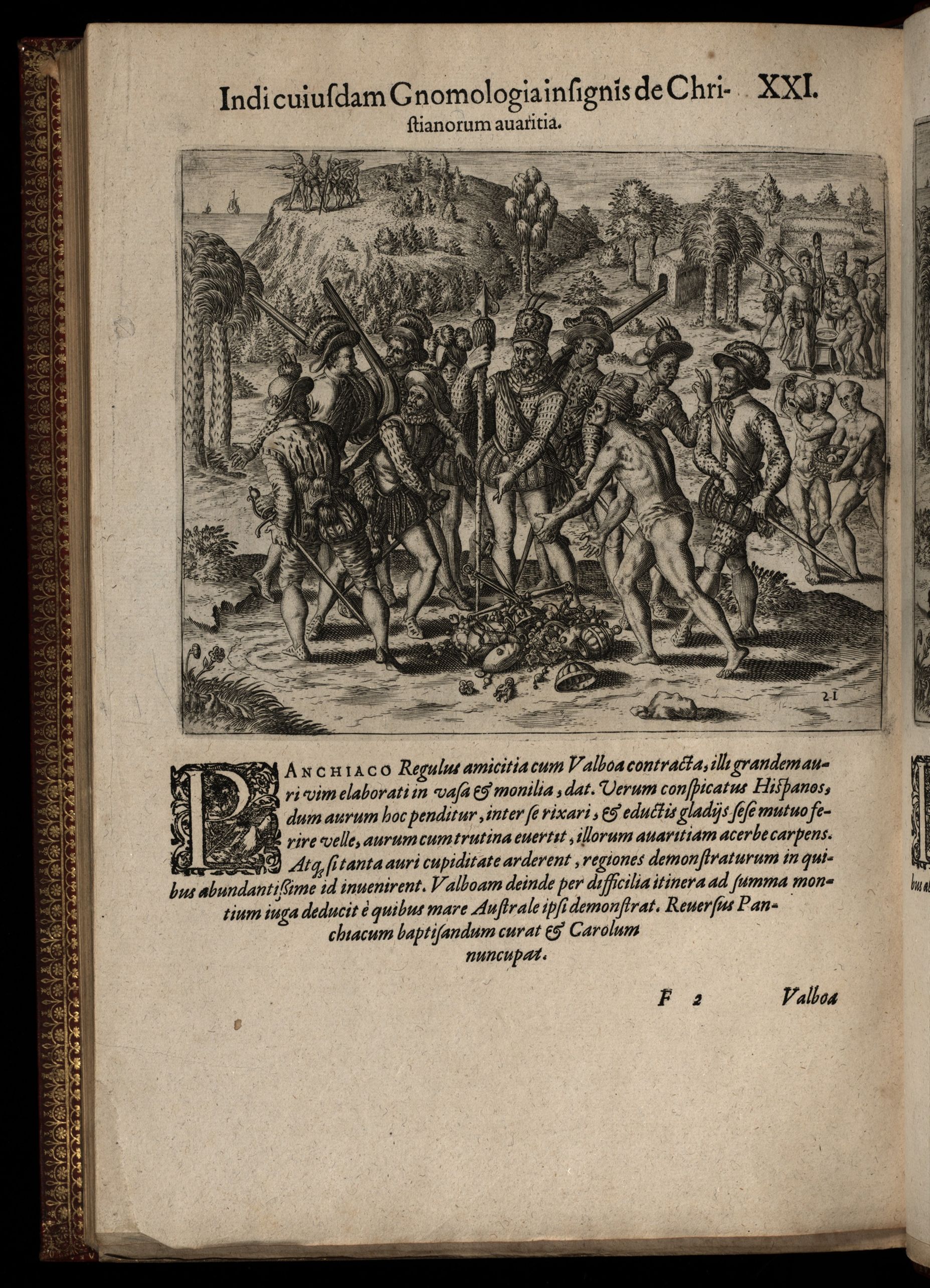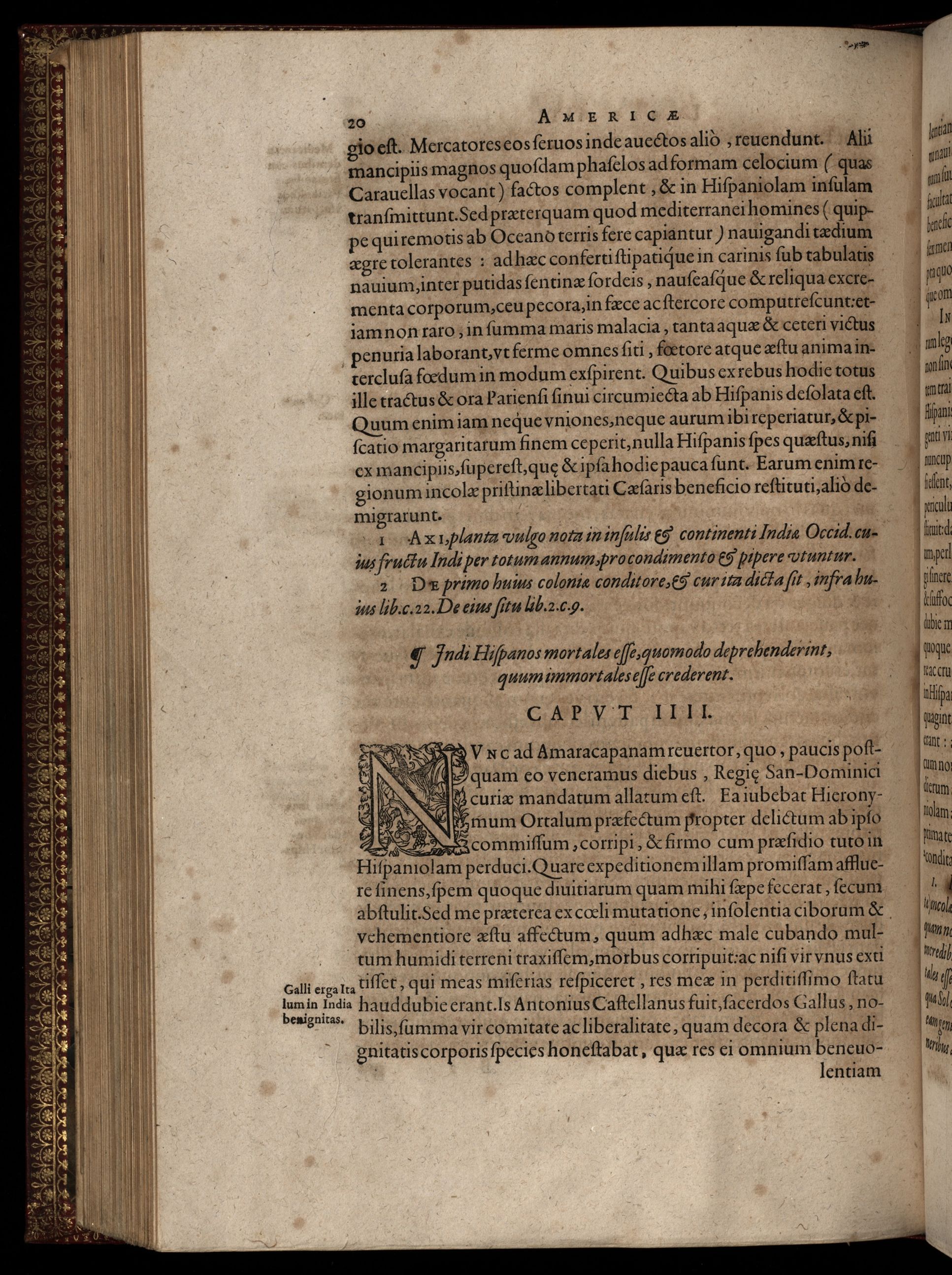 Americae pars quarta. Sive, insignis & admiranda historia de reperta primum Occidentali India à Christophoro Columbo anno M. CCCCXCII scripta ab Hieronymo Bezono Mediolanense, qui istic a[n]nis XIIII versatus dilige[n]ter omnia observavit. Addita ad singula fere capita, non contemnenda scholia in quibus agitur de earum etiam gentium idololatria. Accessit praeterea illarum regionum tabula chorographica. Omnia elegantibus figuris in aes incisis expressa.