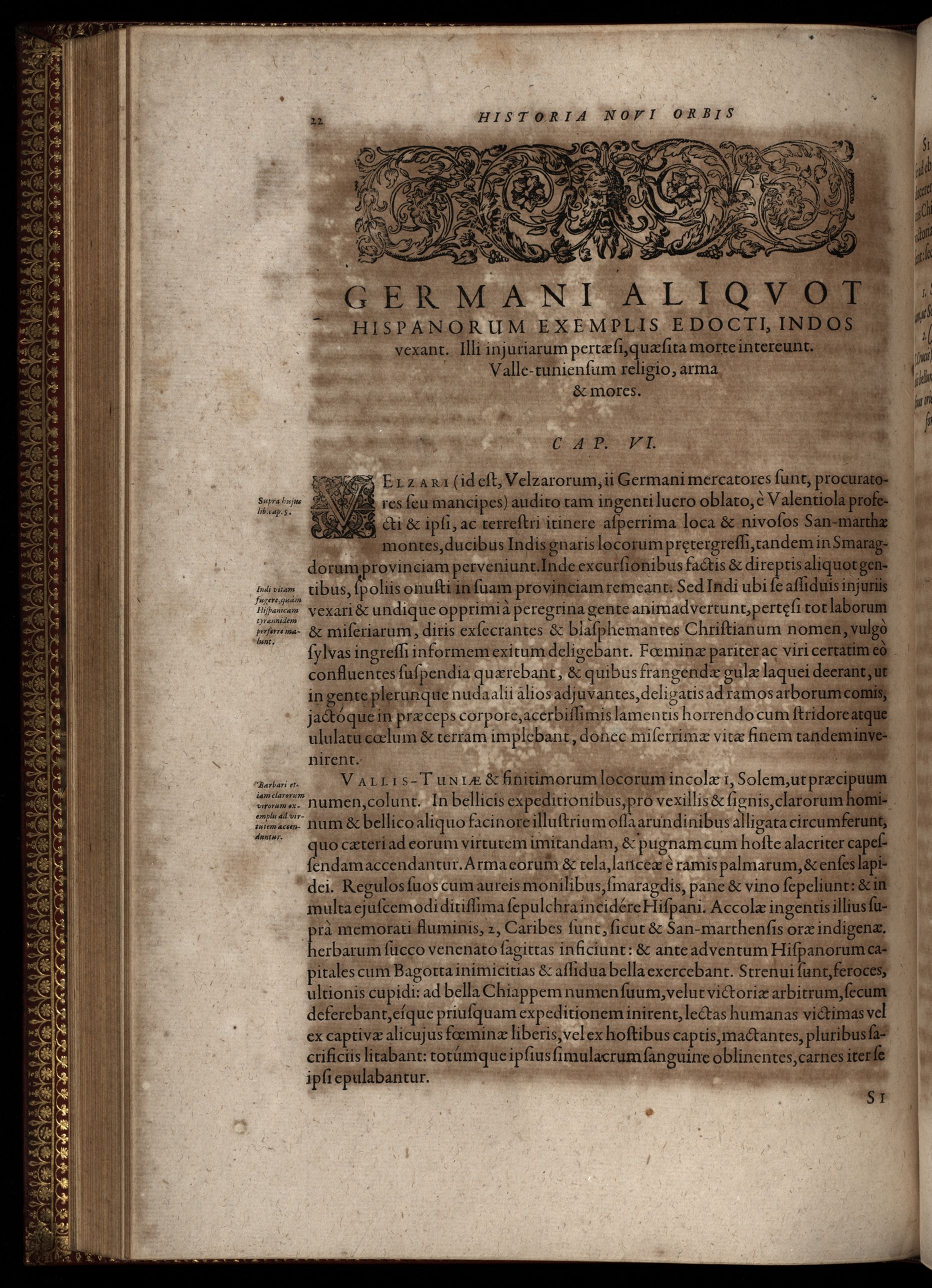 Americae pars quinta. Nobilis & admiratione plena Hieronymi Bezoni Mediolanensis, secundae sectionis Hispanorum, tum in Nigrittas seruos suos, tum in Indos crudelitatem, Gallorumq pirataru de Hispanis toties reportata spolia : aduentu item Hispanoru in Nouam Indiae cotinentis Hispaniam, eorumq contra incolas eius regionis saeuitiam explicans : addita ad singula fere capita scholia, in quibus res Indiae luculenter exponuntur : accessit praeterea tabula chorographica nouae Hispaniae in India Occidentali.
