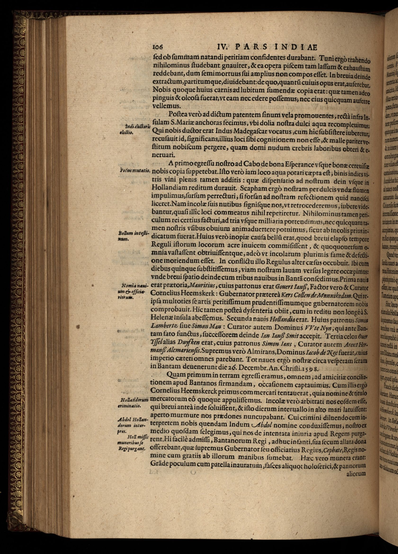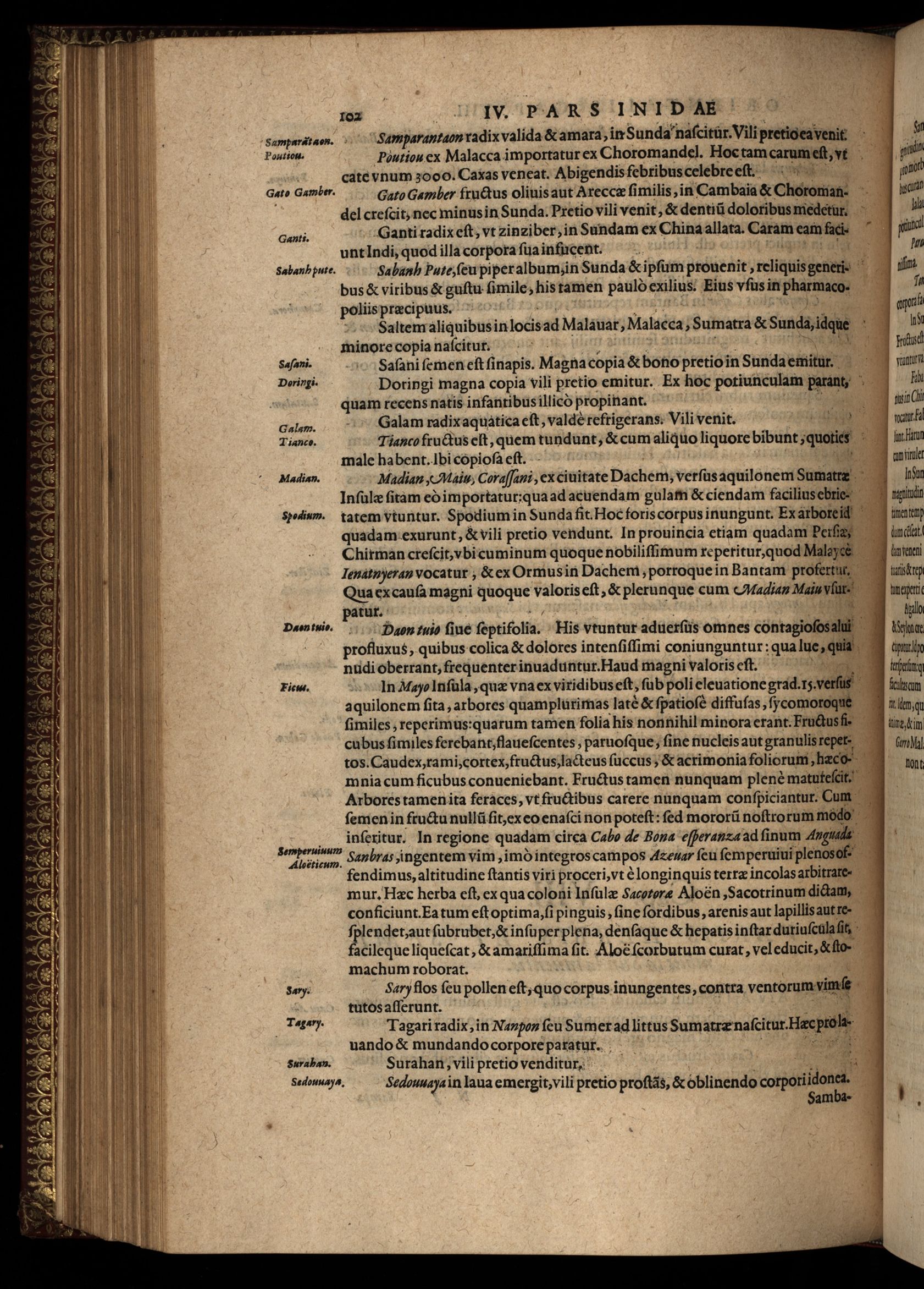 Pars quarta Indiae Orientalis : qua primum varij generis animalia, fructus, arbores : item, aromata seu species & materialia : similiter & margarita seu vniones, ac gemmarum species pleraeq[ue]; sicut in India tum effodiantur, tum generentur; quo itidem in censu, pretio & appellatione sint, accuratè describuntur. Per Ioannem Hugonem Lintschotanum, & nonnullos alios. Descriptioni huic adiectae nonnullibi sunt annotationes clariss.