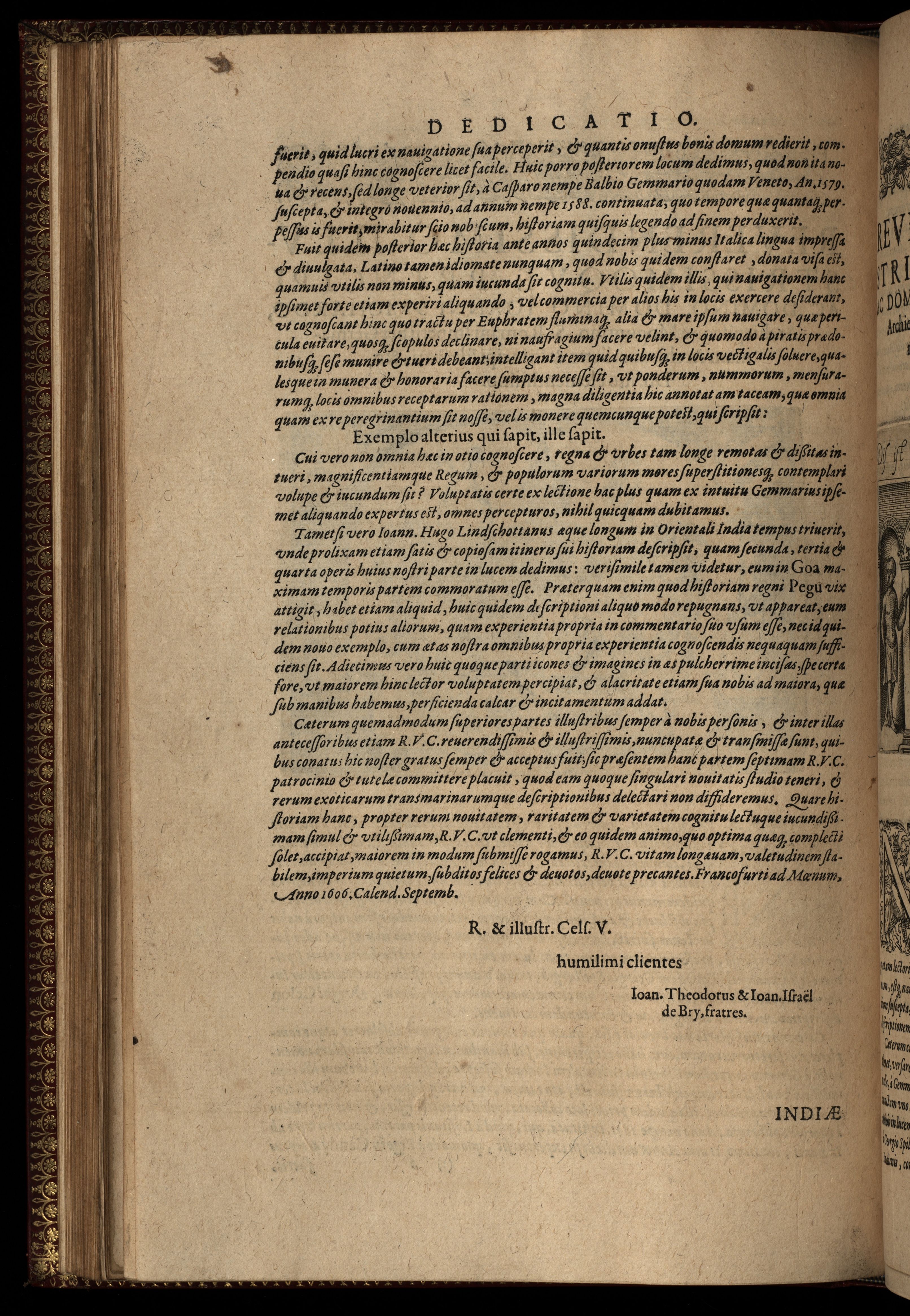 Indiae Orientalis Pars Septima ; Navigationes duas, Primam, trium Annorum, a Georgio Spilbergio, trium navium praefecto, Ann. 1601. ex Selandia in Indiam Orientalem susceptam : Alteram, novem annorum à Casparo Balby Gemmario Veneto anno 1579 ex Alepo Babyloniam versus, & inde porro ad regnum Pegu usque continuatam, continens. Omnium que illi quidem ad annum 1604; huic vero ad annum 1588. usque acciderunt , commemoratione ; Regum item, locorum, populorum, rituumque descriptione addita.