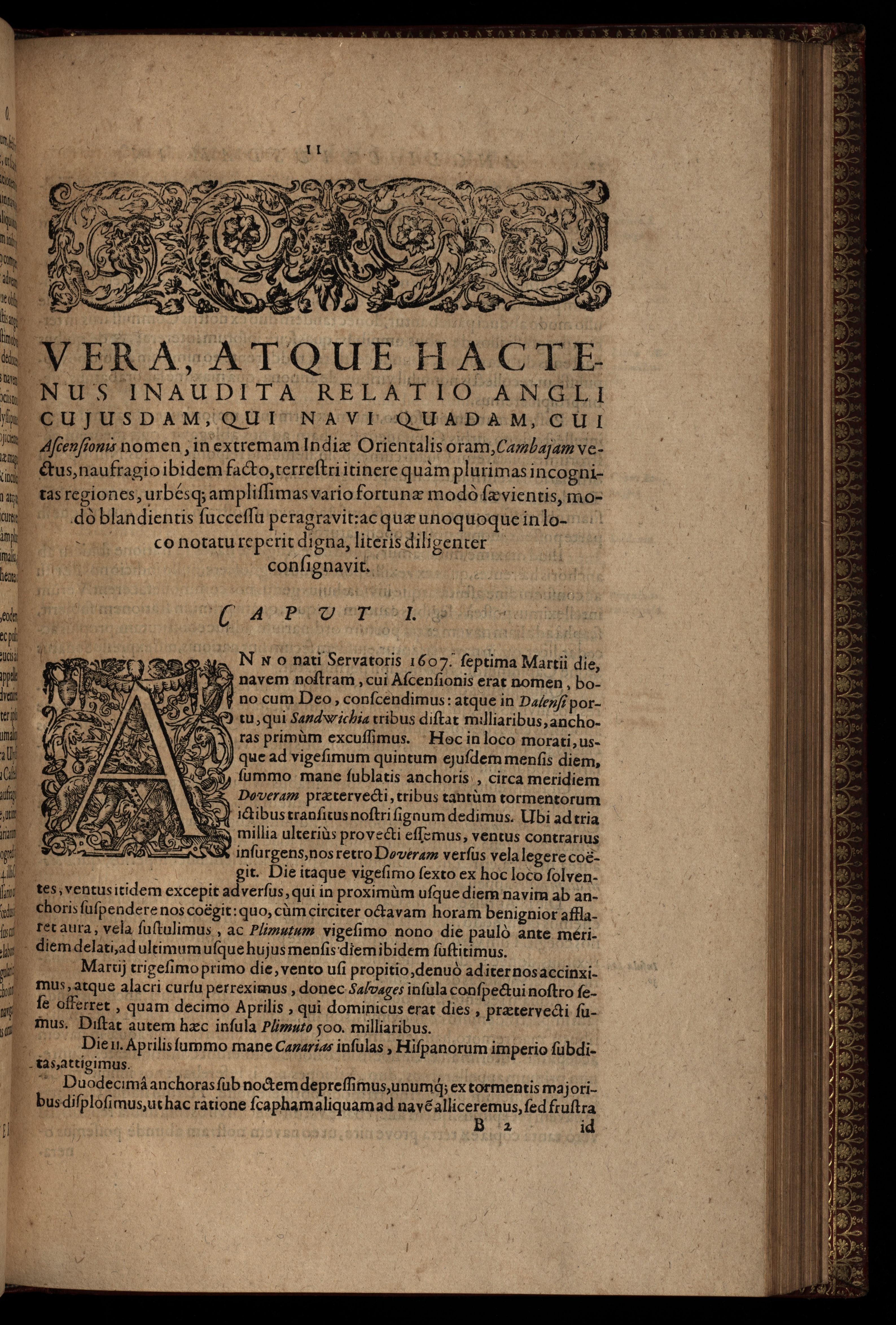 Indiae orientalis pars undecima, quâ continetur I. Duarum navigationum, quas jussu Emanuelis Portugalliae regis in indiam orientalem ann. 1501. Dn. americus vesputius instituit, historia. II. Vera atque hactenus inaudita angli cujusdam relatio, qui nave quadam, cui ascenionis nomen, in extremam indiae orientalis oram cambajam vectus, ac naufragium ibidem passus, postea quàm plurimas nobis incognitas regiones, amplissimasq[ue] urbes peragravit, inq́ue iis multa lectu audituq́ue jucunda observavit.