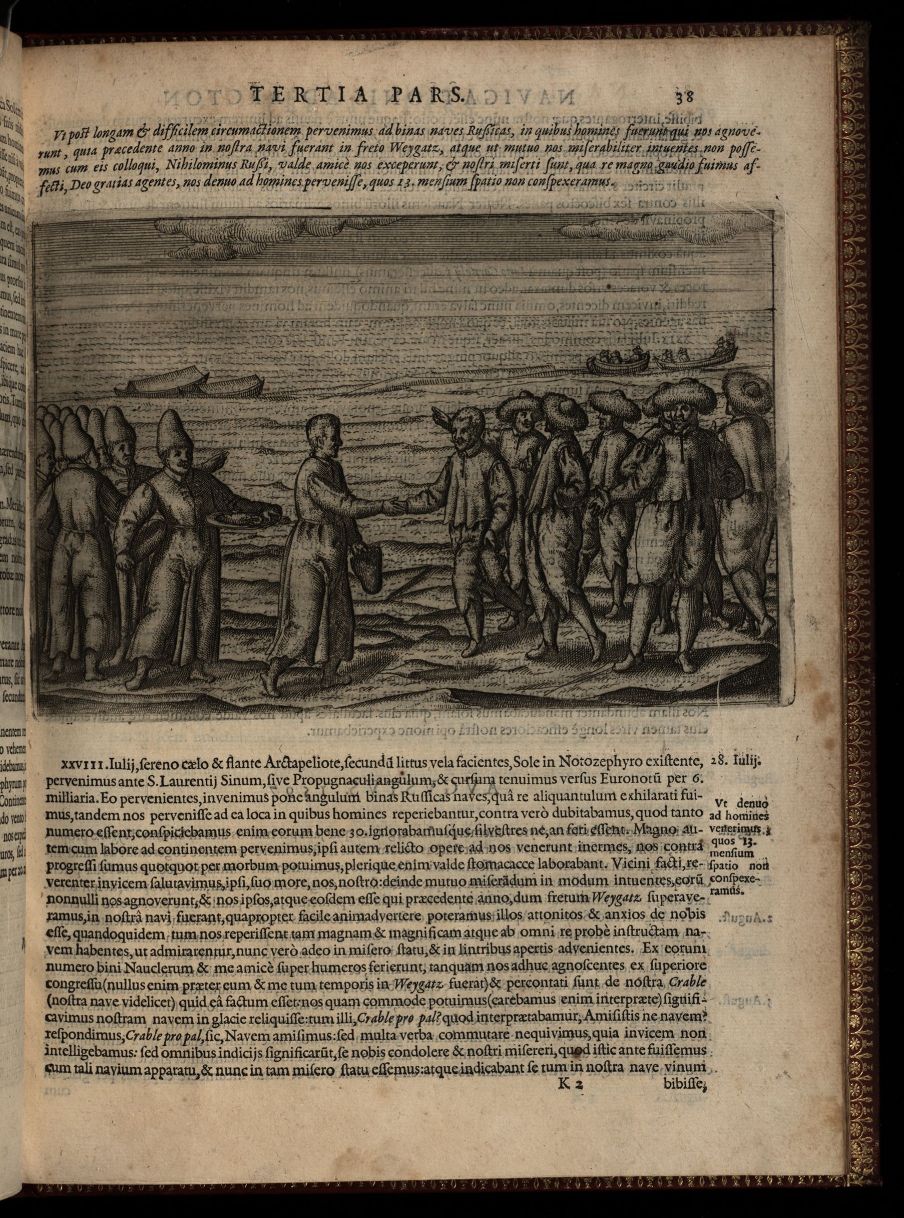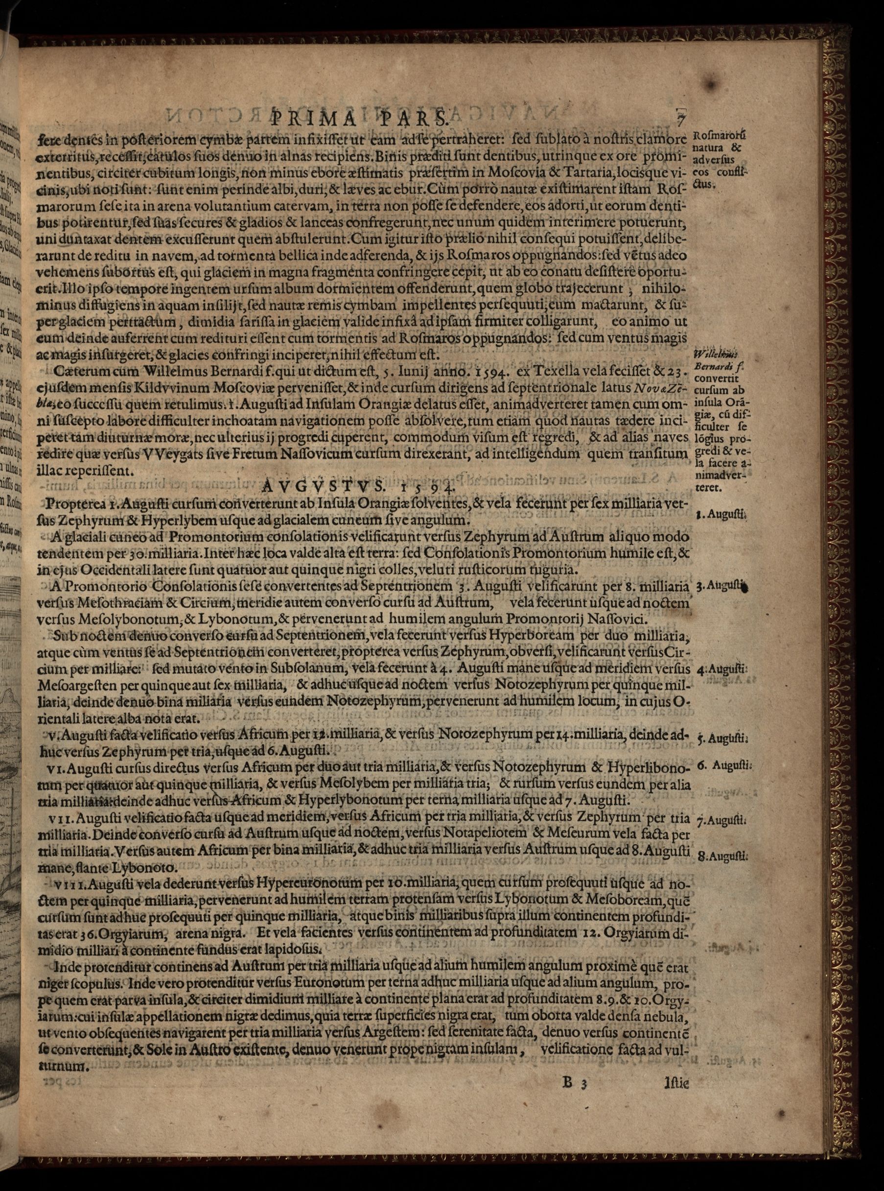 Diarium Nauticum, seu vera descriptio trium navigationum admirandarum, & nunquam auditarum, tribus continuîs annis factarum, à Hollandicis & Zelandicîs navibus, ad Septentrionem, supra Norvagîam, Moscoviam & Tartariam, versus Catthay & Sinarum régna : tum ut detecta fuerînt Weygatz fretum, Nova Zcmbla, & Regio sub 80. : gradu sita, quam Groenlâdiam esse censent, quam nullus unquam adijt : Deinde de feris & trucibus vrsis, alijsquemonstrismarinis, & întolerabili frigore quod pertulerunt.