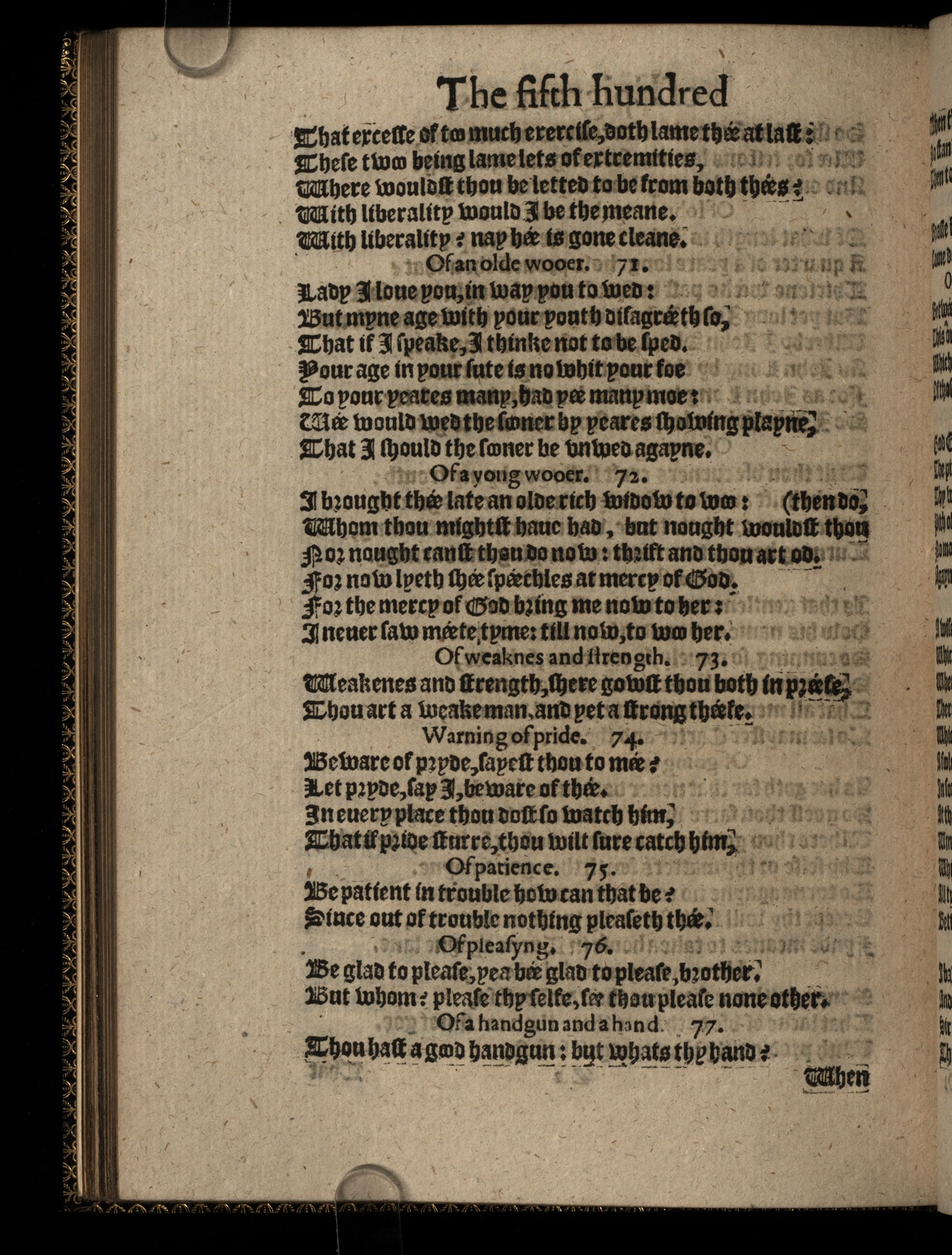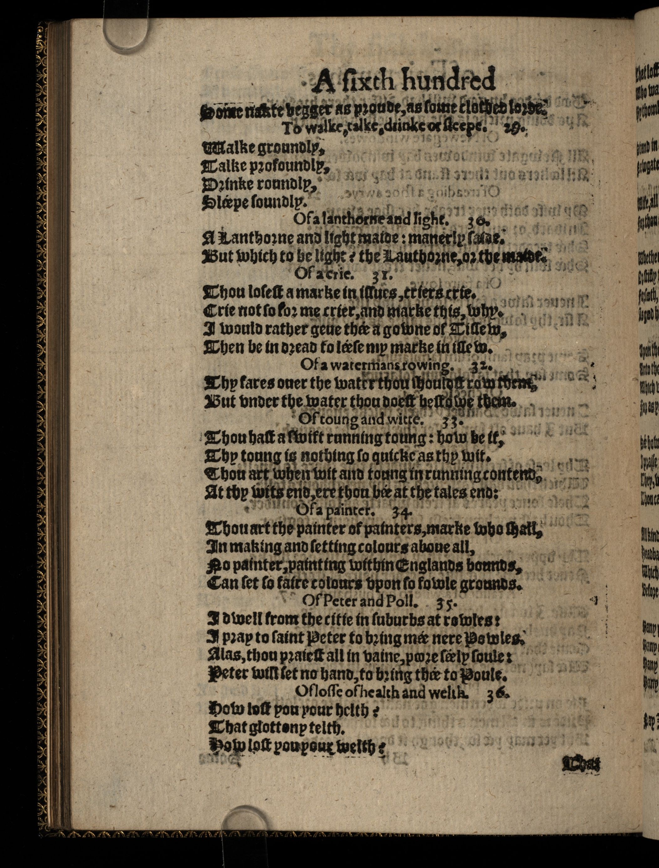 The Workes of Iohn Heiwood Newlie Imprinted. Namelie, A Dialogue, wherein are pleasantlie contriued the number of all the effectuall Prouerbs in our English tongue: Compact in a matter concerning two maner of Mariages. Together with three hundred Epigrammes vpon three hundred Prouerbes. Also a fourth, fifth and sixth hundreth of other very pleasant, pithie and ingenious Epigrammes.