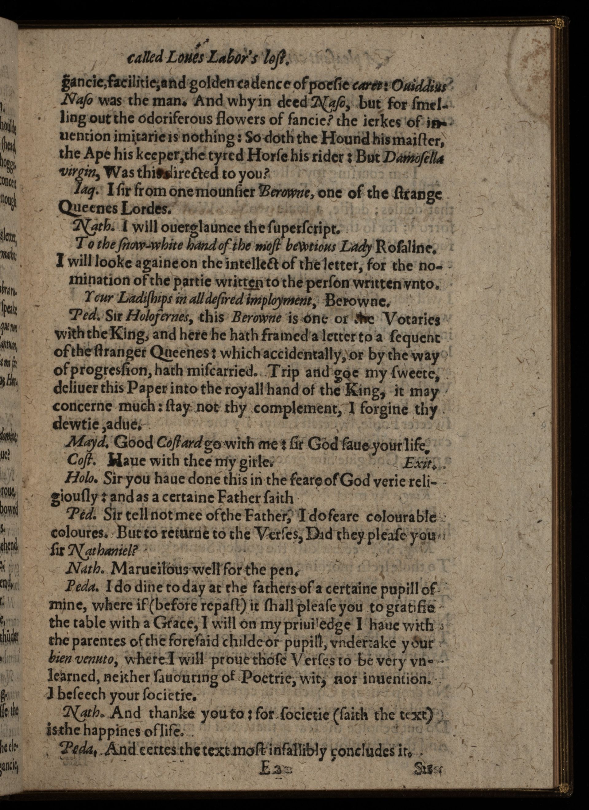 A Pleasant Conceited Comedie Called Loues labors lost. As it was presented before her Highnes this last Christmas.