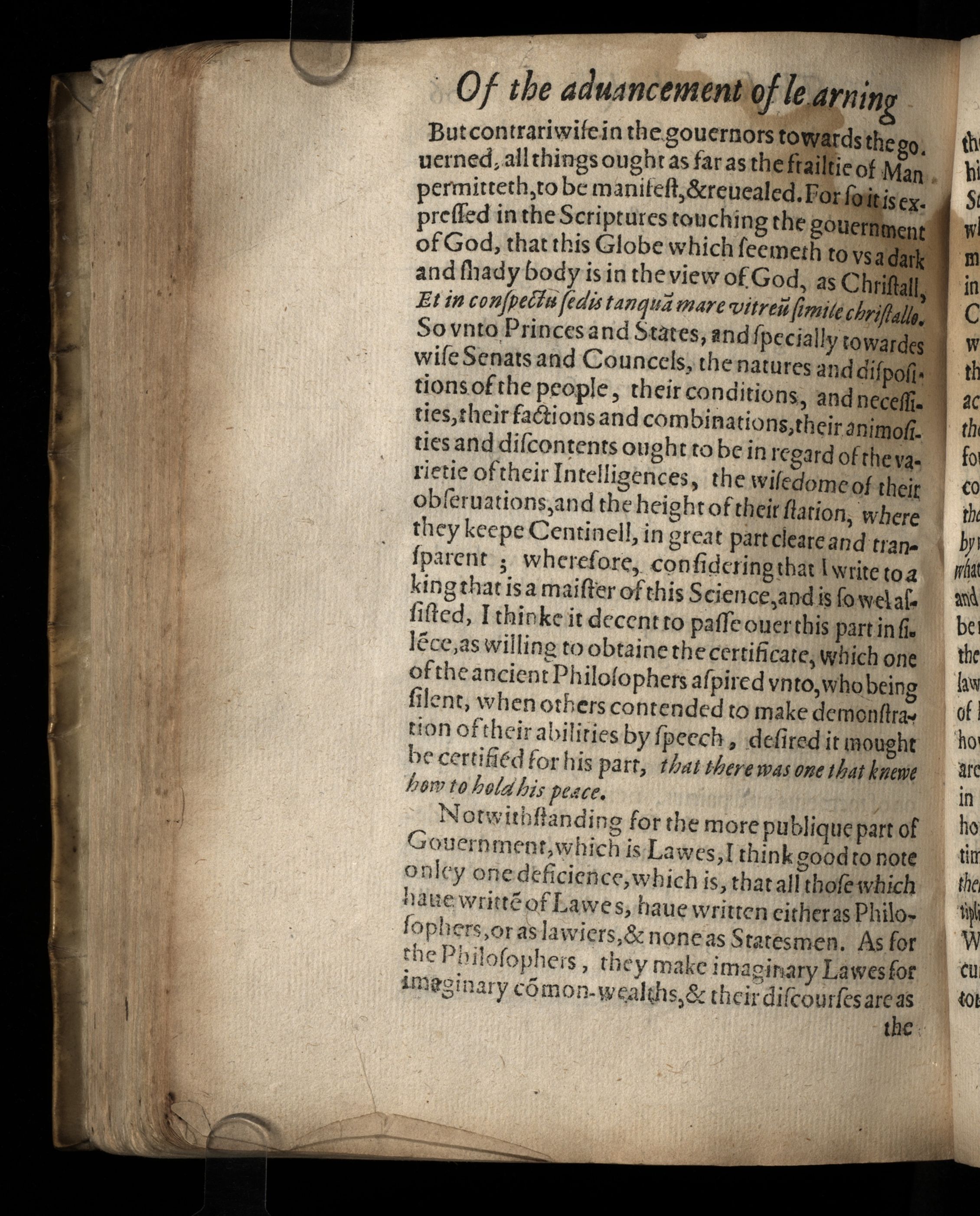 The Twoo Bookes of Francis Bacon. Of the proficience and aduancement of Learning, diuine and humane. To the King.
