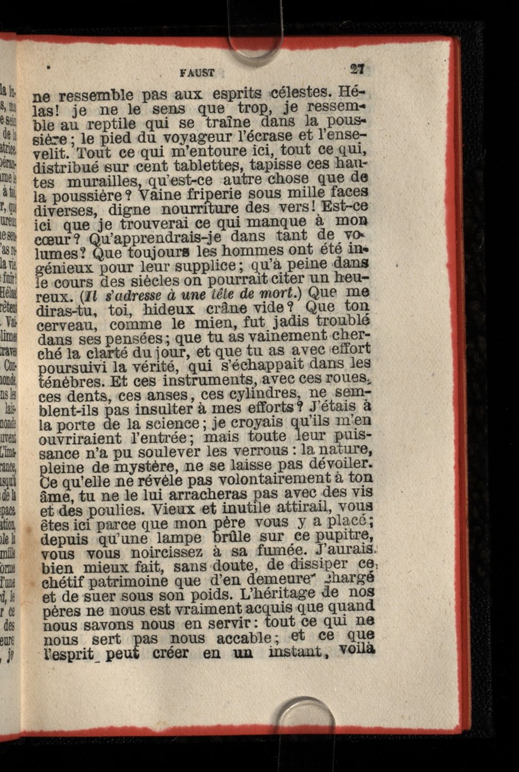 AbstractÉdition « tout public » offrant une retraduction partielle du Faust 1 par Jacobus Rodleinmann, qui est en fait plutôt une compilation de traductions antérieures, dont en particulier celle de Stapfer. Publiée pour la première fois en 1868, cette édition connut 13 réimpressions jusqu'en 1906, atteignant les 10'000 exemplaires.