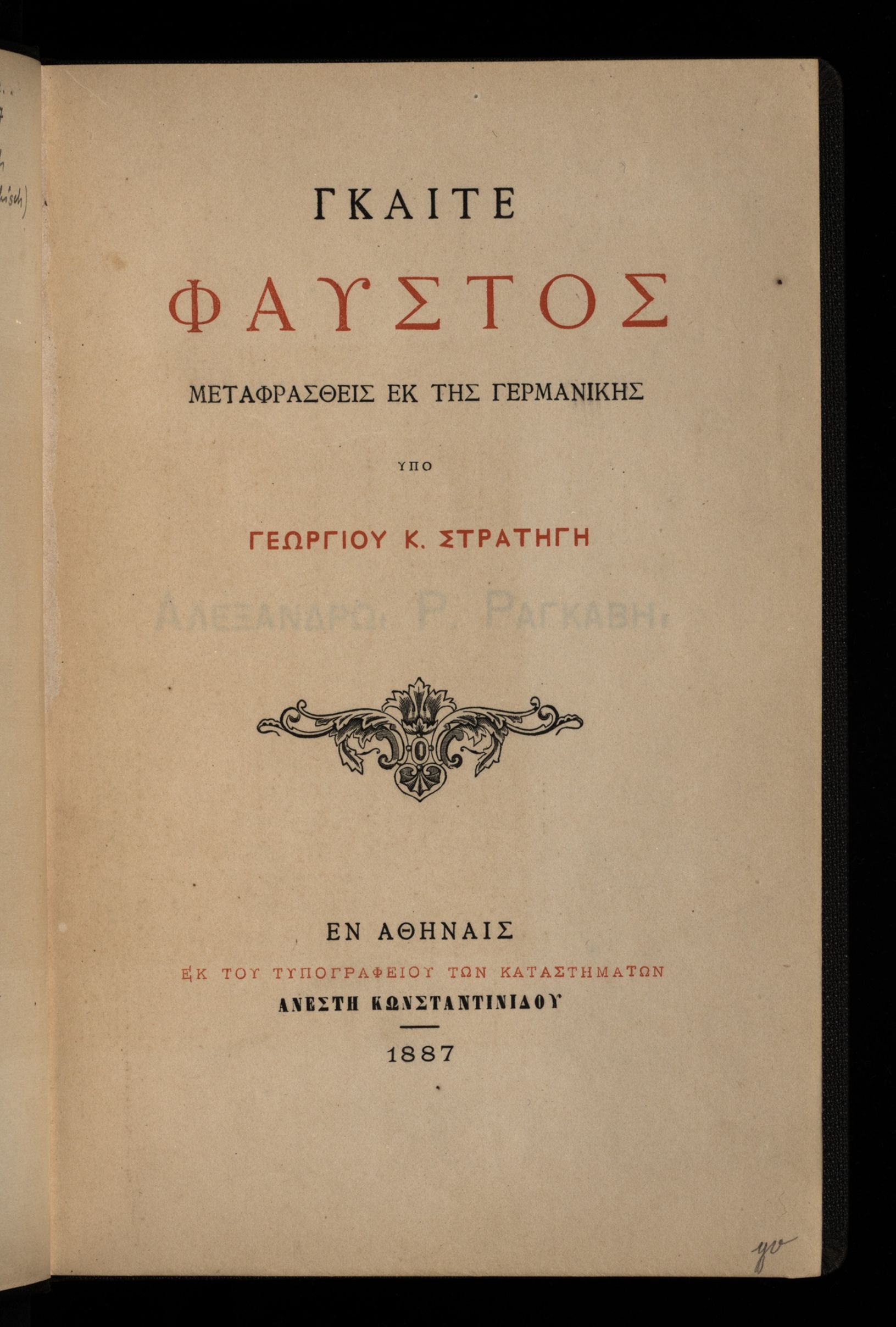 Title: Gkaite Phaustos. Metaphrastheis ek tēs Germanikēs.