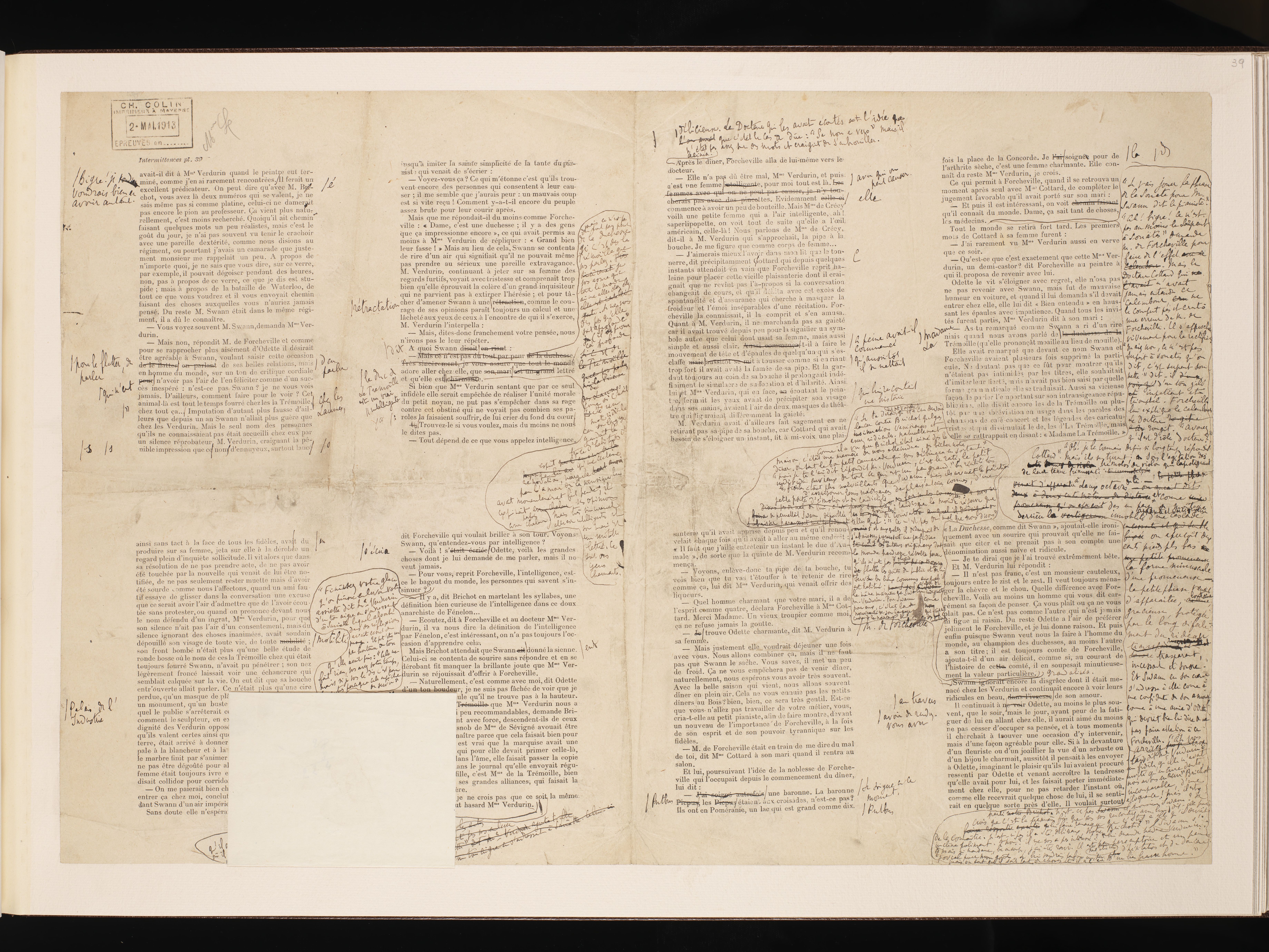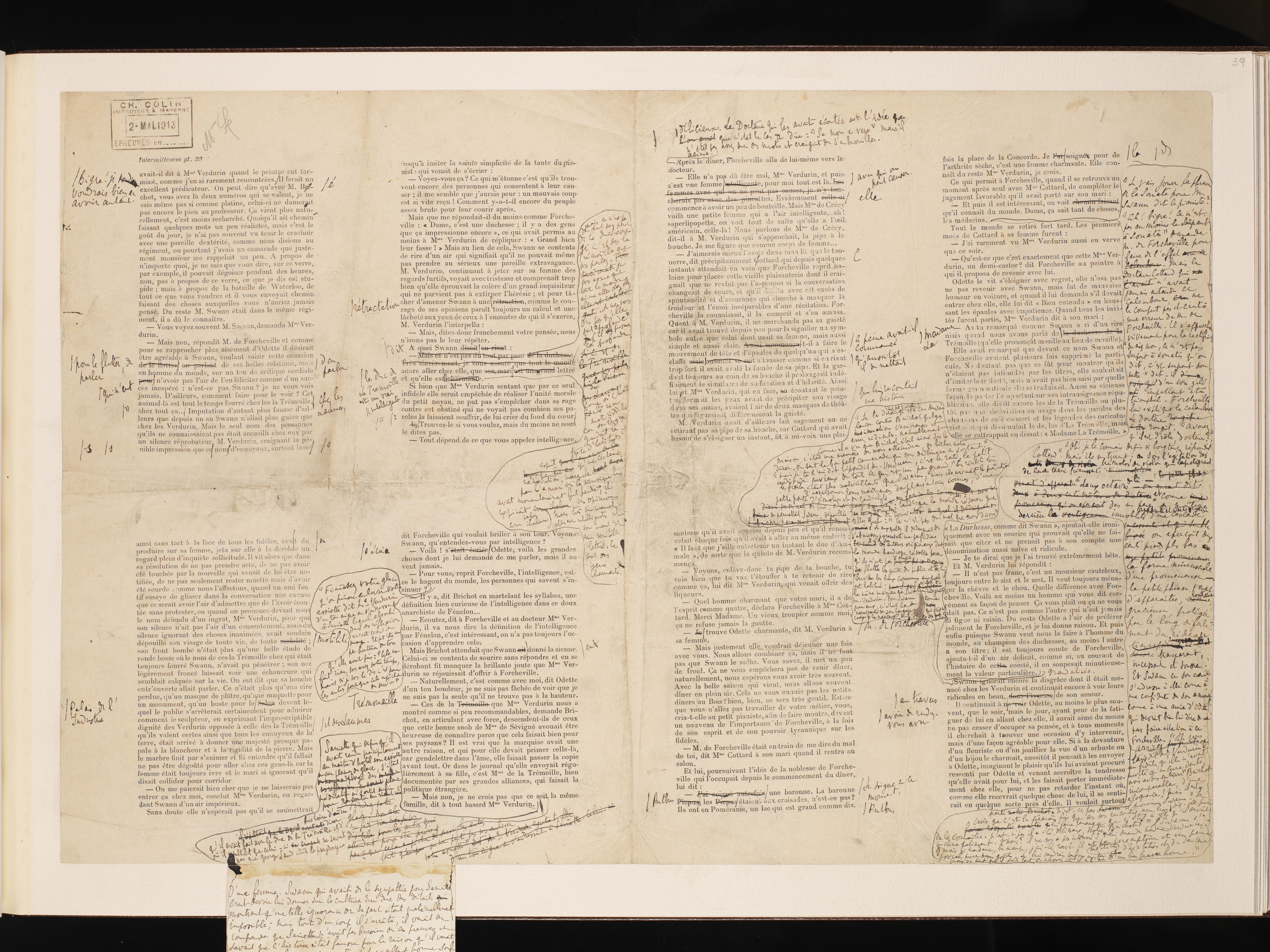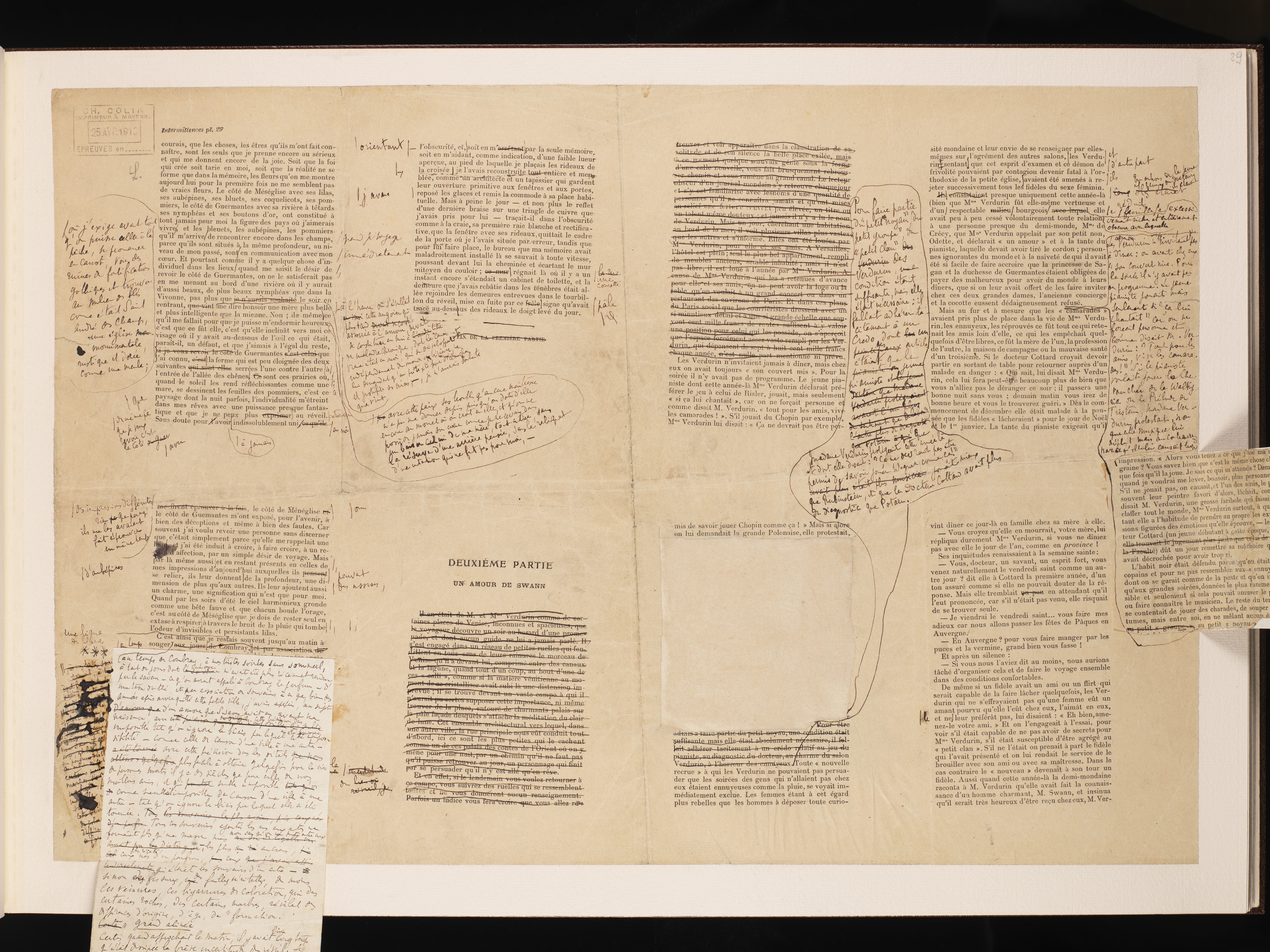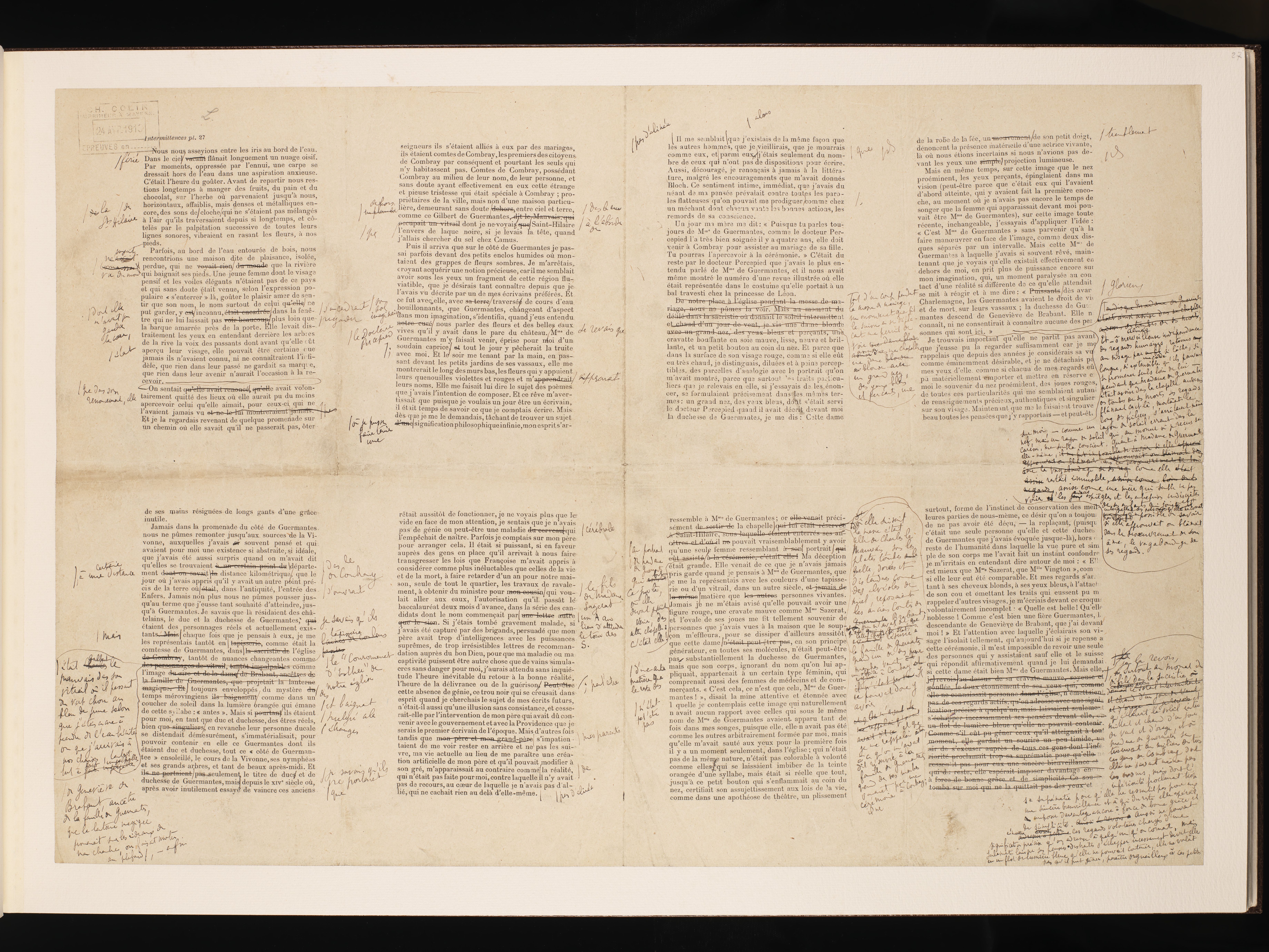 Corrections autographes des premières épreuves de Du côté de chez Swann - Combray.