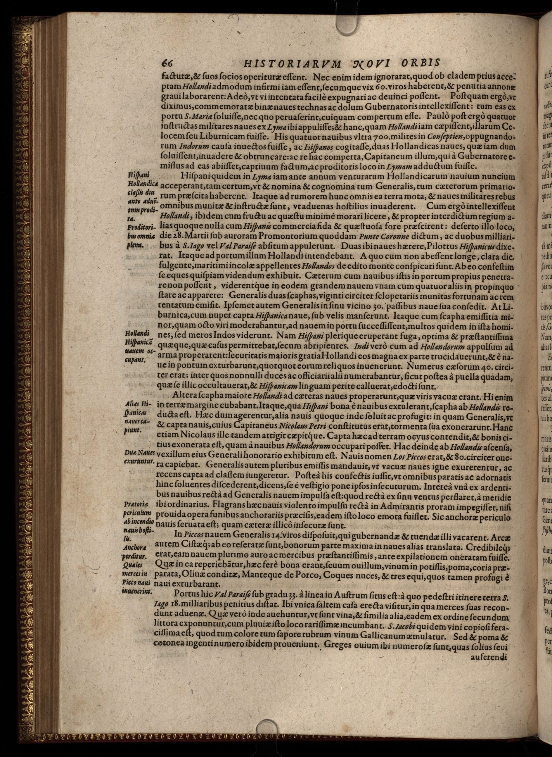 Historiae antipodum sive novi orbis, qui vulgo Americae et Indiae Occidentalis nomine usurpatur, pars nona : continens veram et genuinam descriptionem duarum nauigationum Hollandicarum, quas Bataui in diuersas orbis partes magno animo, et si varia fortuna susceperunt. I. Et primo quidem libro narratur, quo pacto quinq[ue] naues, quae Amsterdamo soluerant.