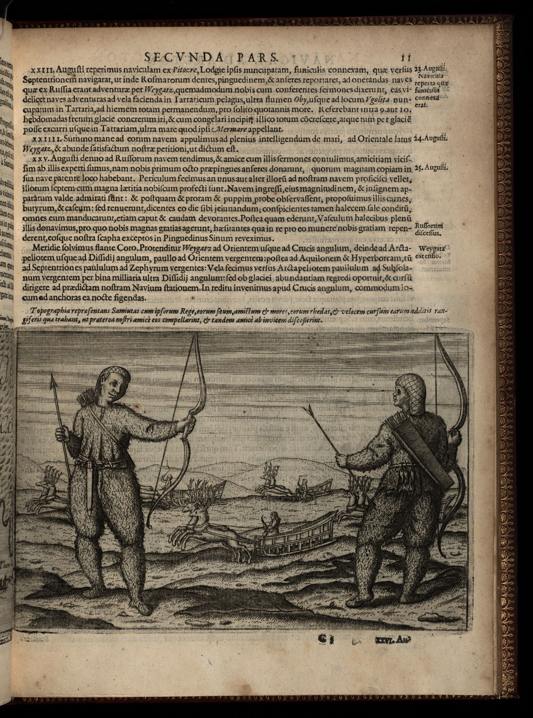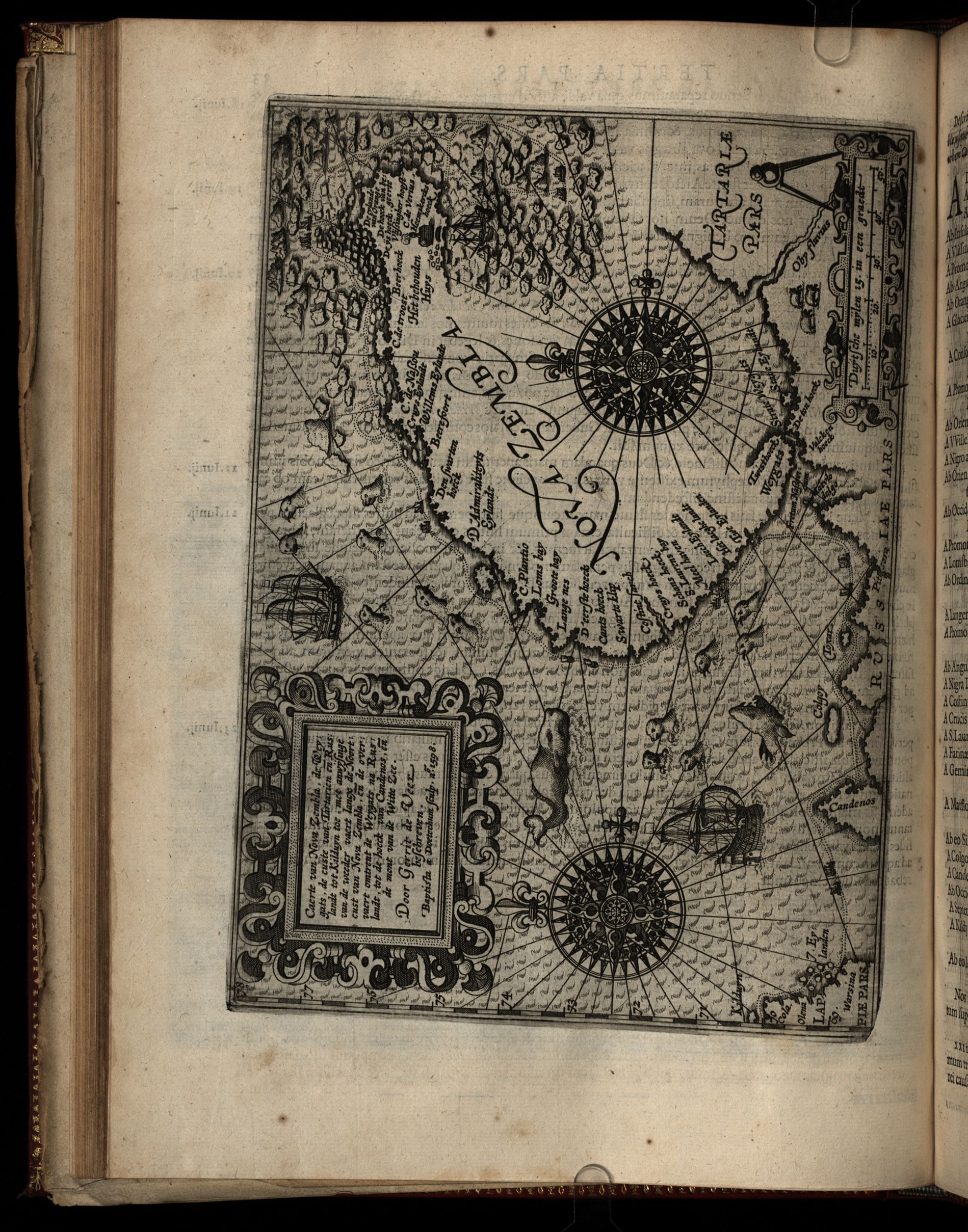 Diarium Nauticum, seu vera descriptio trium navigationum admirandarum, & nunquam auditarum, tribus continuîs annis factarum, à Hollandicis & Zelandicîs navibus, ad Septentrionem, supra Norvagîam, Moscoviam & Tartariam, versus Catthay & Sinarum régna : tum ut detecta fuerînt Weygatz fretum, Nova Zcmbla, & Regio sub 80. : gradu sita, quam Groenlâdiam esse censent, quam nullus unquam adijt : Deinde de feris & trucibus vrsis, alijsquemonstrismarinis, & întolerabili frigore quod pertulerunt.