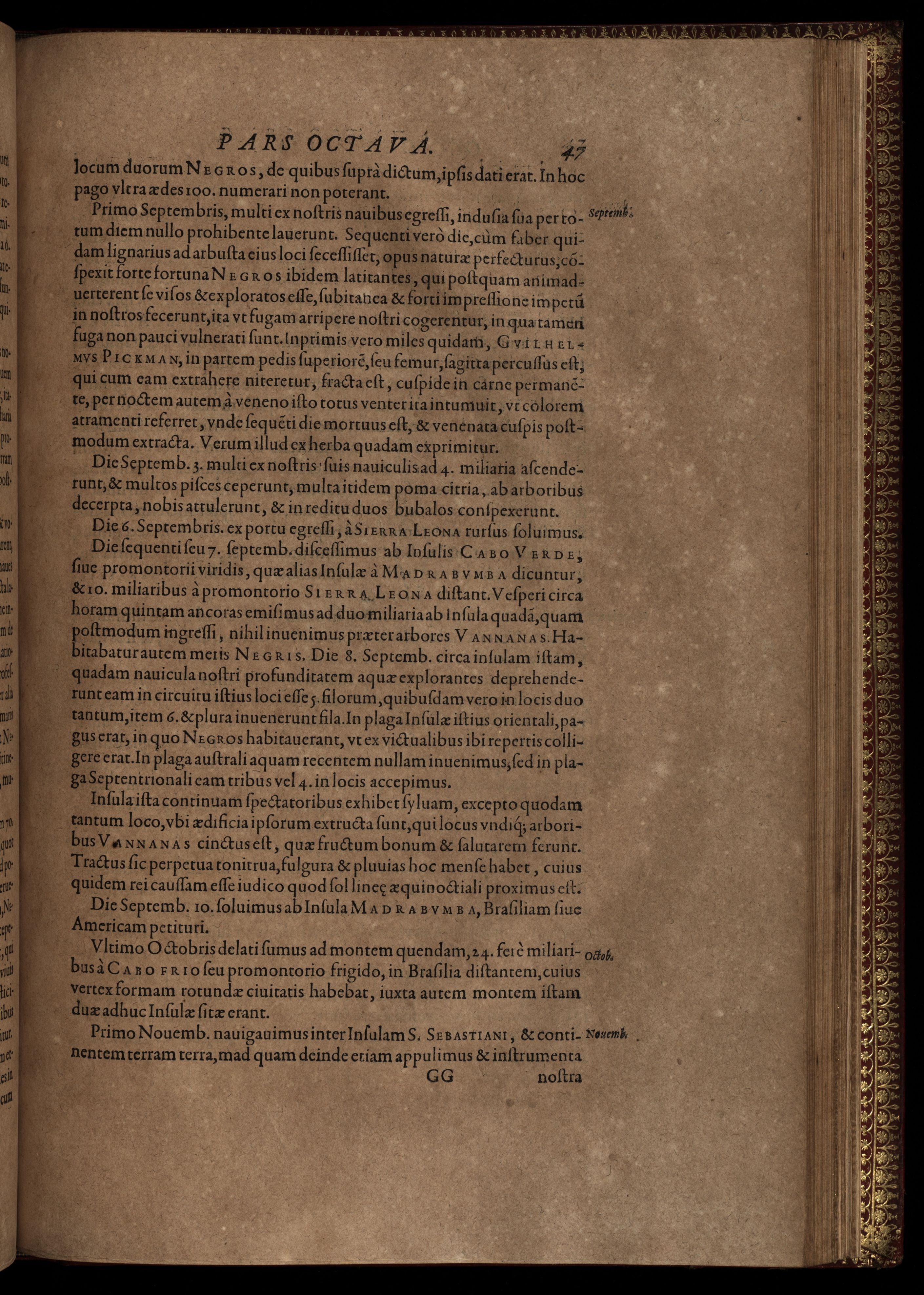 Americae pars VIII. Continens primo, Descriptionem trium itinerum nobilissimi et fortissimi equitis Francisci Draken, qui peragrato primum vniuerso terrarum orbe, postea cum nobilissimo equite Iohanne Hauckens, ad expugnandum ciuitatem Panama, in Indiam nauigauit, vbi vitam suam ambo finierunt. Secundo, iter noblissimi equitis Thomae Candisch, qui duorum ferè annorum spacio, 13000. Anglicana miliaria in mari confecit, vbi describuntur quoque omnia quae in hoc itinere ipsi acciderunt & visa sunt.