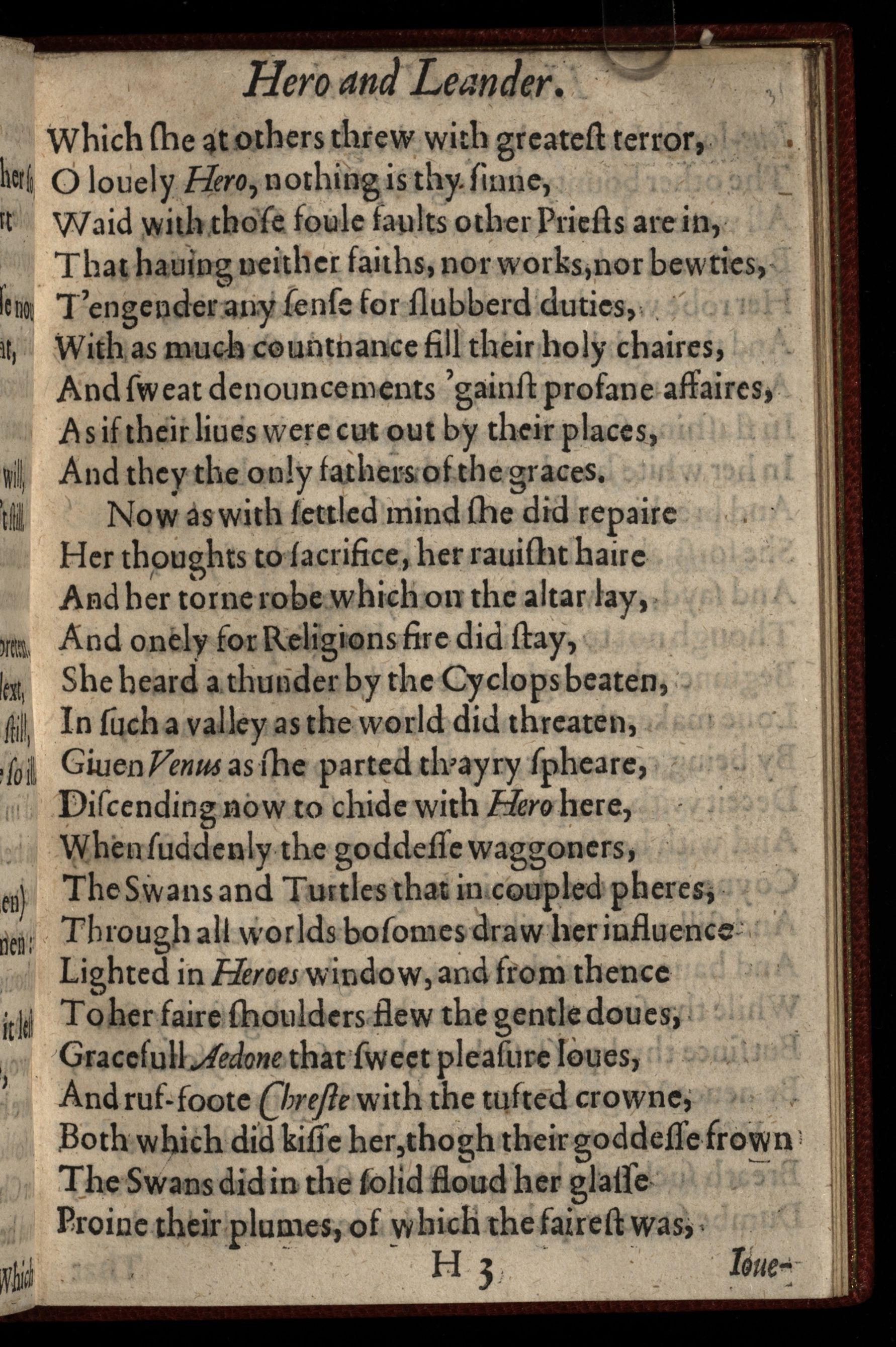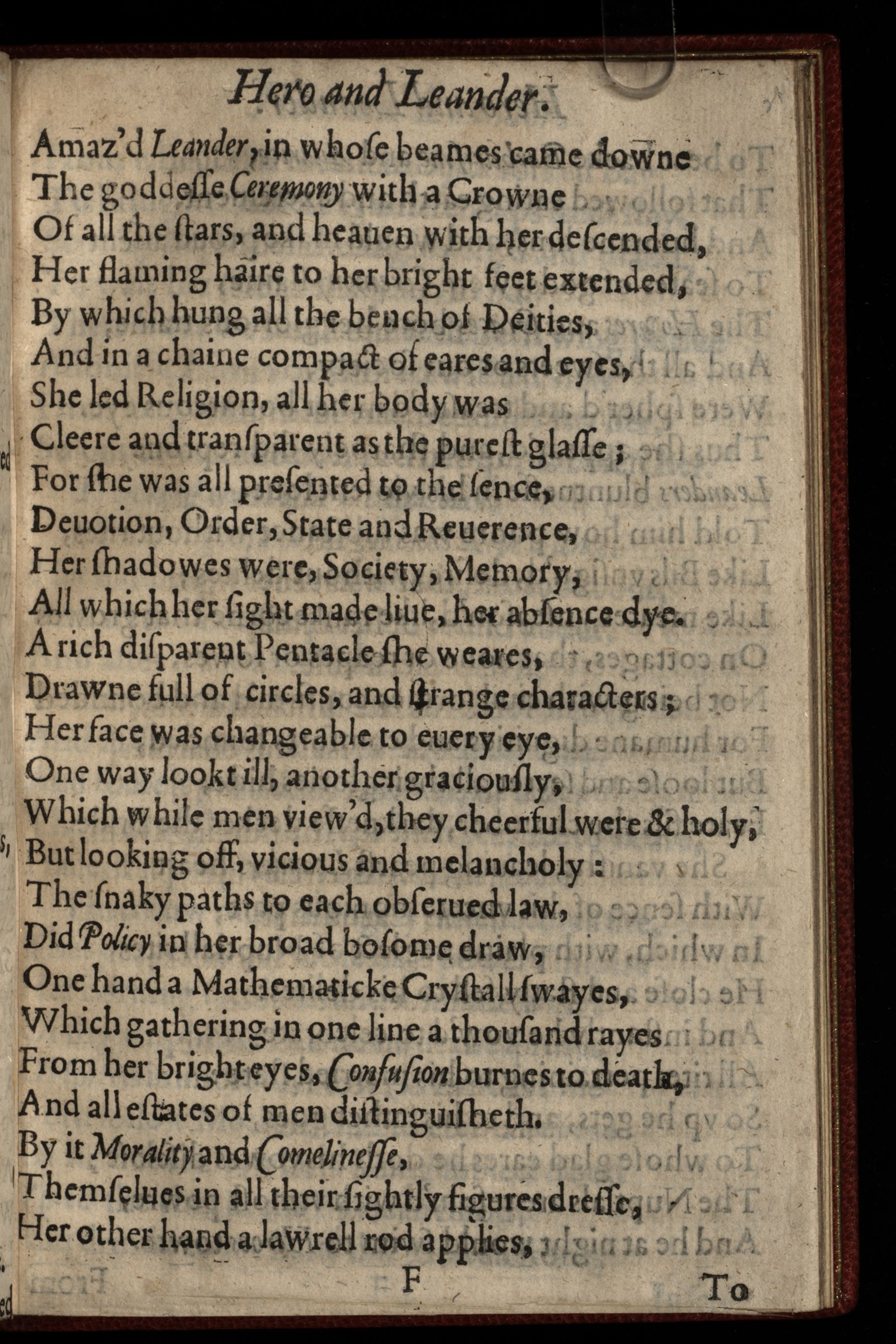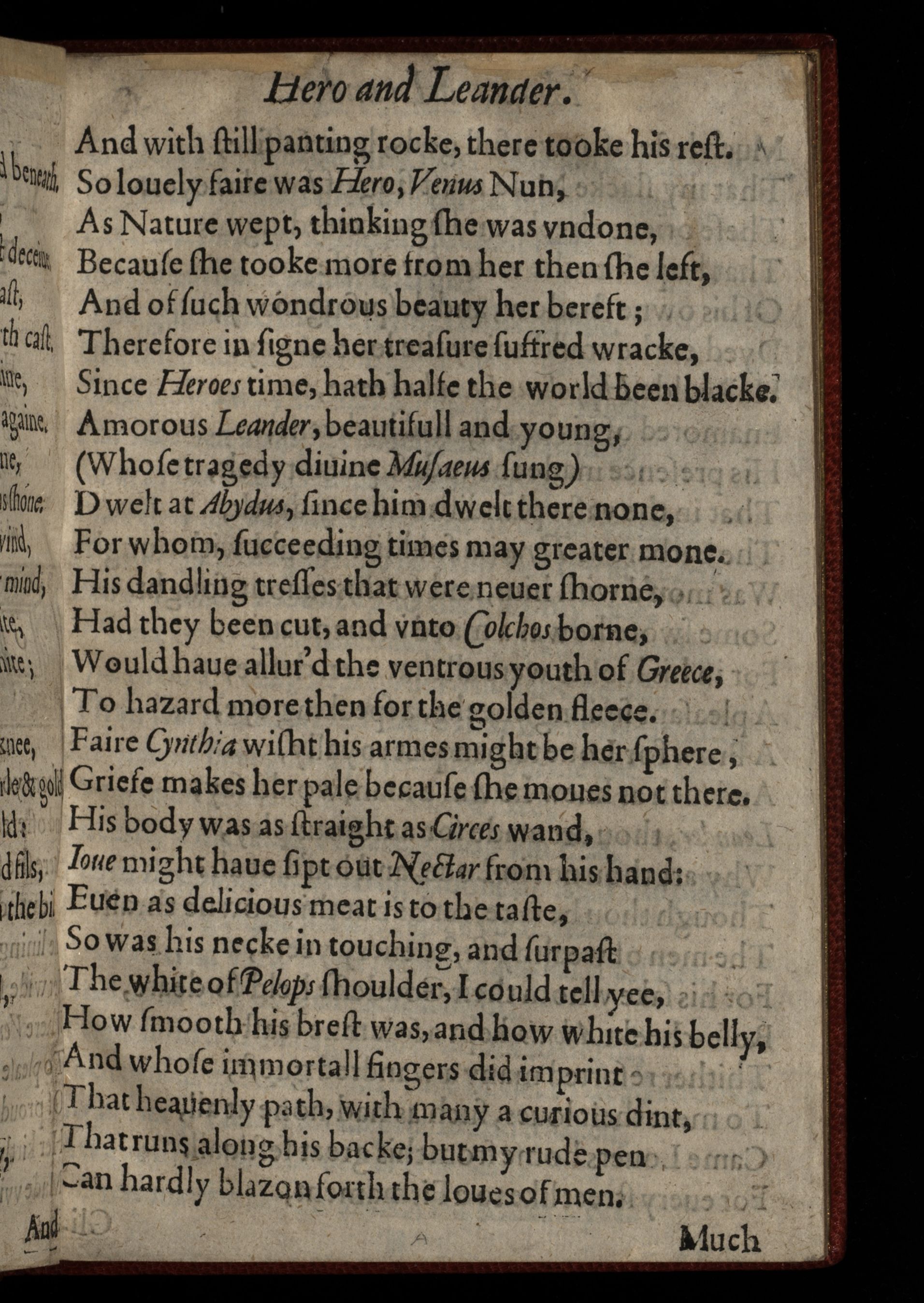 Hero and Leander: Begunne by Christopher Marloe, and finished by George Chapman.