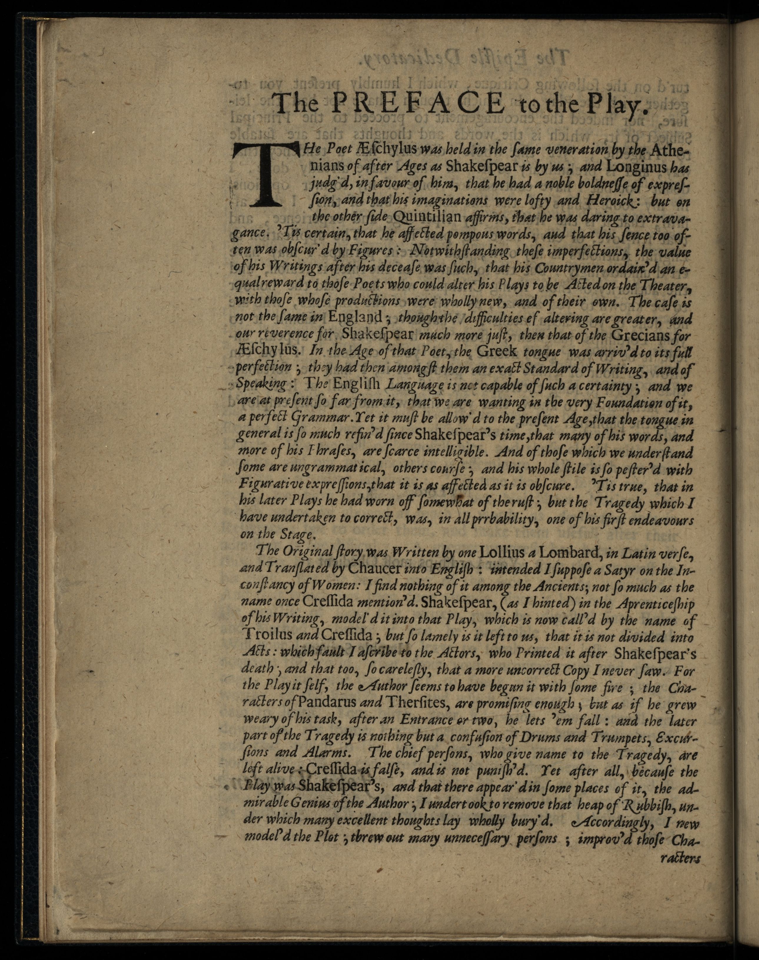 Troilus and Cressida, or, Truth Found too Late. A Tragedy As it is Acted at the Dukes Theatre. To which is Prefix’d, a Preface Containing the Grounds of Criticism in Tragedy.