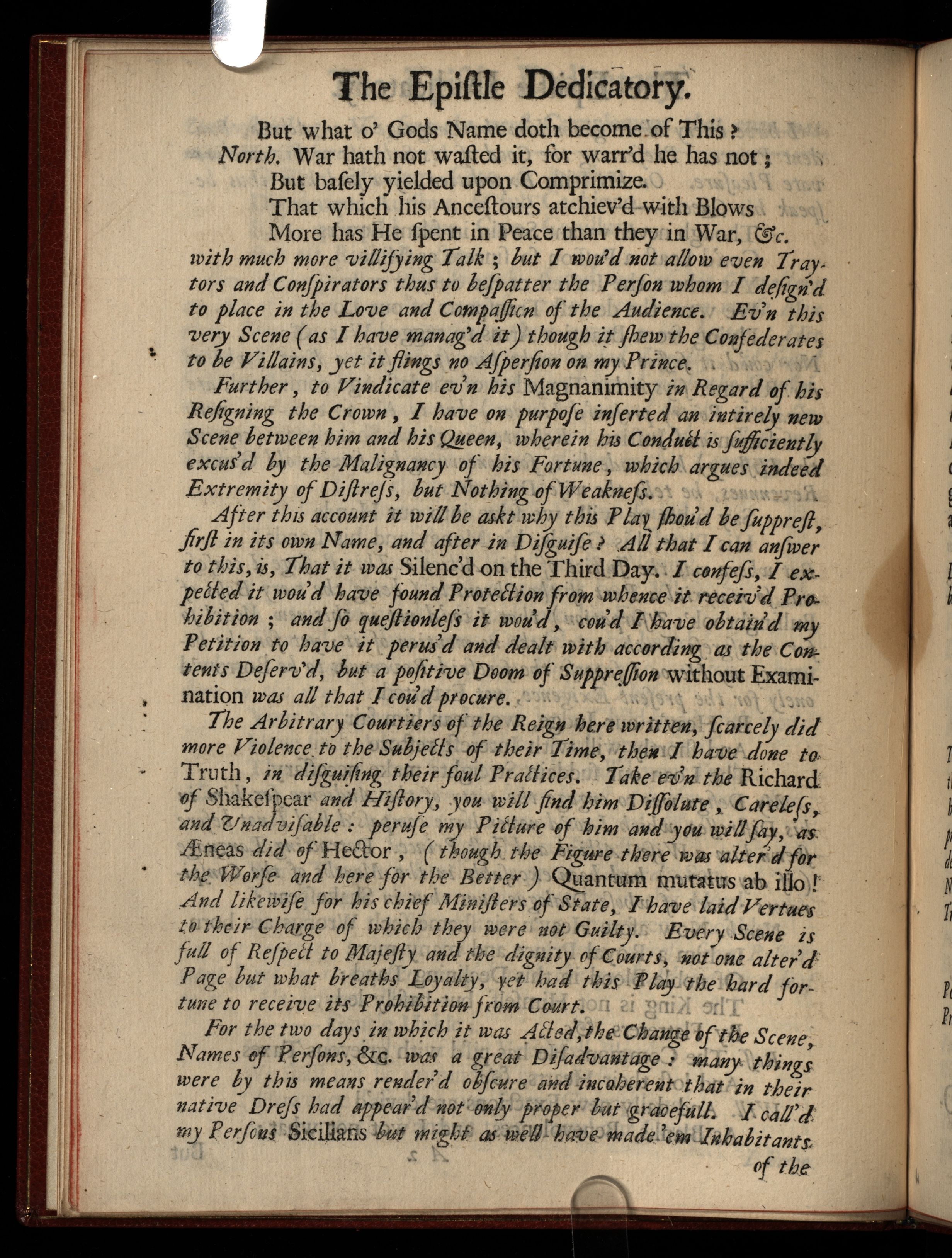 The History of King Richard the Second. Acted at the Theatre Royal, Under the Name of the Sicilian Usurper. With a Prefatory Epistle in Vindication of the Author. Occasion’d by the Prohibition of this Play on the Stage.