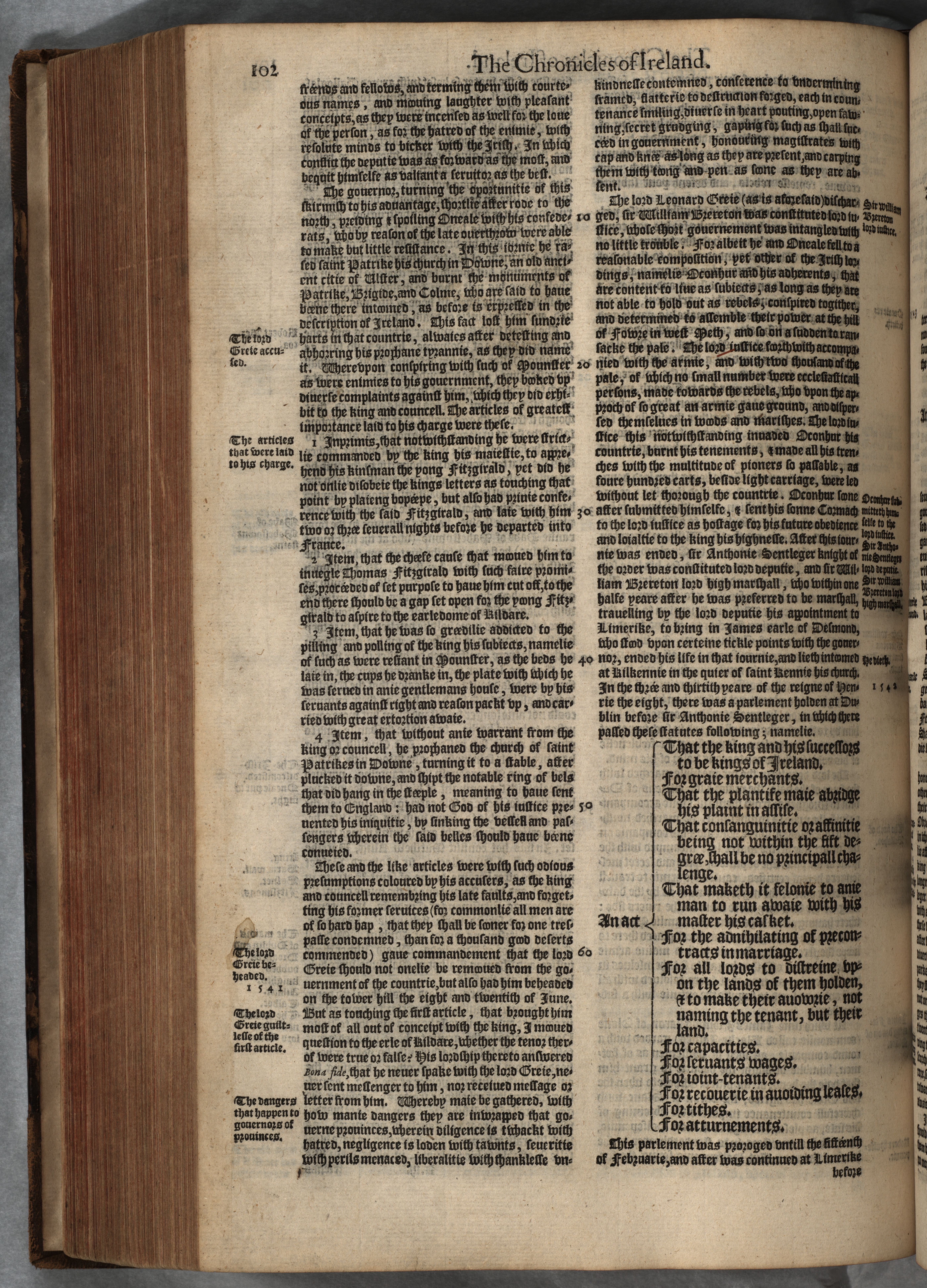 The First and Second volumes of Chronicles comprising 1 The description and historie of England, 2 The description and historie of Ireland, 3 The description and historie of Scotland: First collected and published by Raphaell Holinshed, William Harrison, and others: Now newlie augmented and continued (with manifold matters of singular note and worthie memorie) to the yeare 1586. by Iohn Hooker alias Vowell Gent. and others. With conuenient tables at the end of these volumes.
